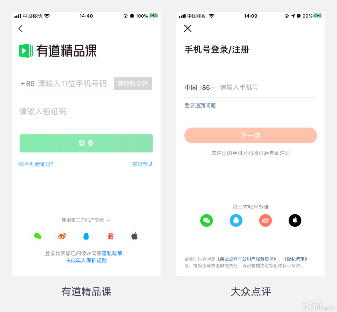 使用手机号+获取验证码是目前最常用的注册登录方式,通过发送短信获取验证码在60-90秒内进行注册登录,这么做是为了确认用户拥有该手机号的使用权。