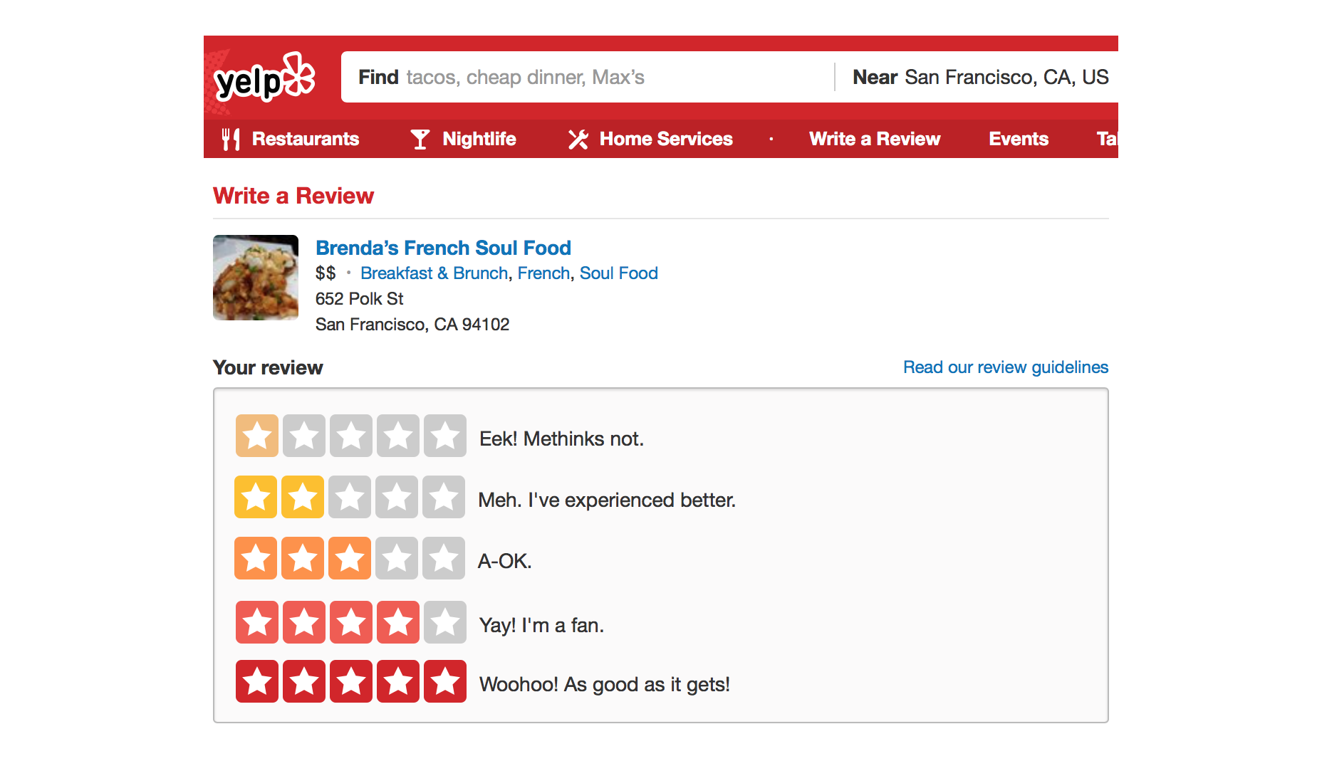 Yelp 在设计的时候就有意识地传递出UI界面背后有人参与的感觉,并且鼓励用户操作和探索。