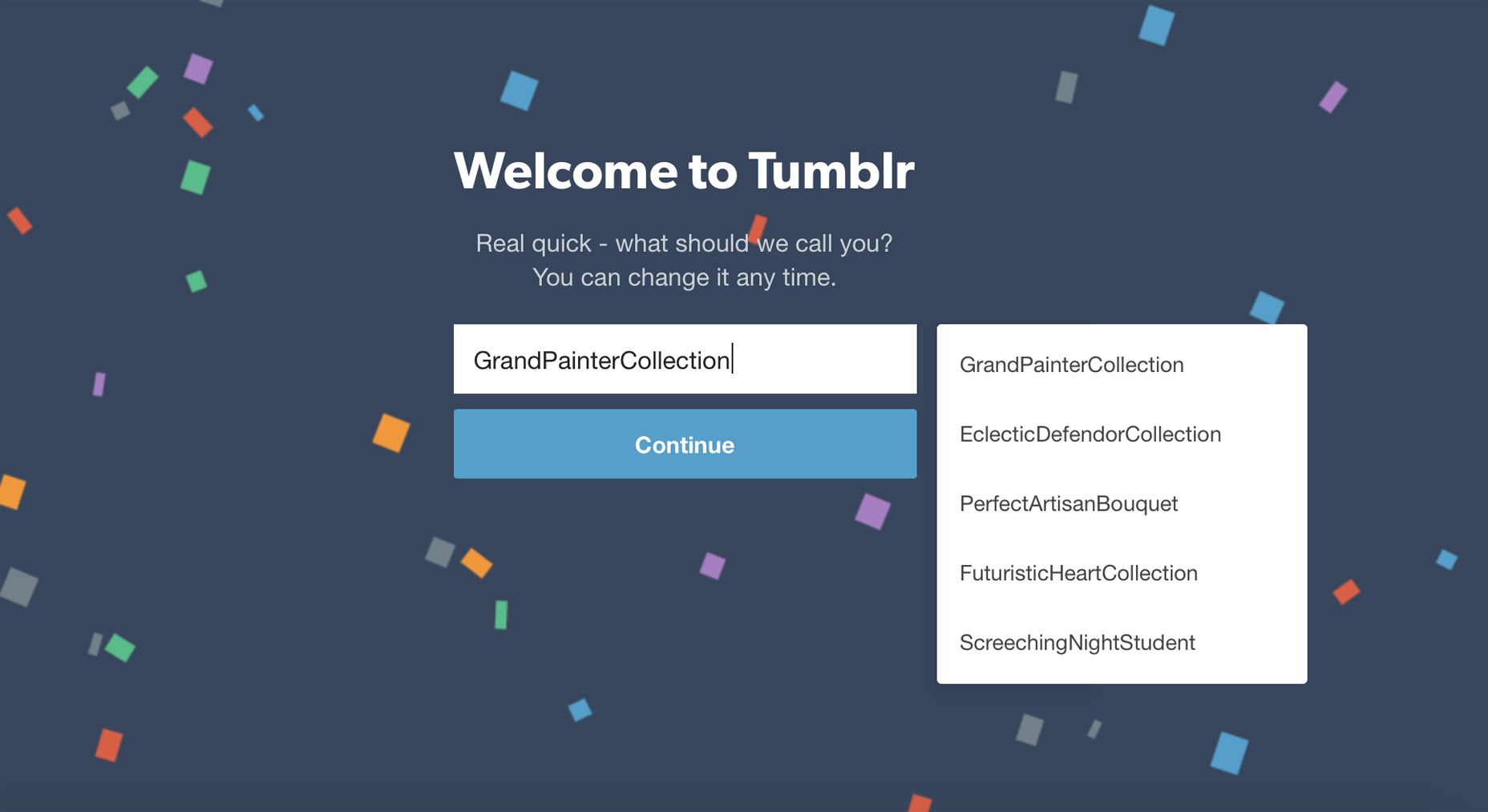 举个例子,当用户注册 Tumblr 的时候,系统会要求为自己的博客选择一个名称。这是一件重要的的事情,因为这不仅关于博客名和你的用户名,而且会体现在博客的url上。因为这一任务重要且关键,用户可能存在的忧虑是“如果名字没起好又不能修改岂不是麻烦了”,所以,Tumblr 在这个时候通过微文案提醒用户这个名称“随时可以修改”。问题解决了。
