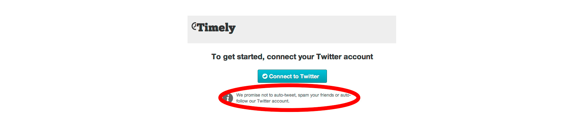 在订阅信息或者进行分享的时候,用户也是存在潜在忧虑的,这个时候微文案就是让用户安心的基础。许多人在提供电子邮件和关联Twitter 帐号的时候,都不希望被垃圾邮件骚扰,而Twitter 在这个时候会使用微文案“我们和你一样讨厌垃圾邮件”。虽然许多网站和APP在关联用户帐号的时候都一再强调不会推送垃圾邮件,但是最终结果对于用户而言,很难确定。